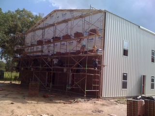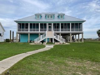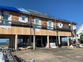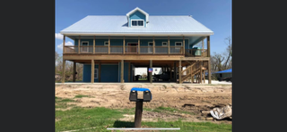 We finished this home just before Hurricane Laura in 2020. This photo shows the completed home with minimal damage from the hurricane eventhough the eye of the storm went right over it on Calcasieu Lake.